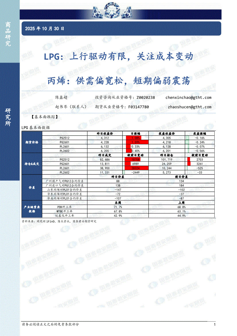 国泰君安期货-LPG:上行驱动有限,关注成本变动,丙烯,供需偏宽松,短期偏弱震荡-251030