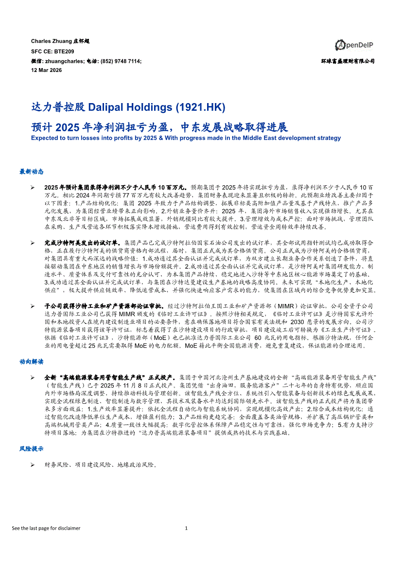 达力普控股 Dalipal Holdings:OpenDeIP-达力普控股Dalipal Holdings-1921.HK-预计2025年净利润扭亏为盈,中东发展战略取得进展-260312