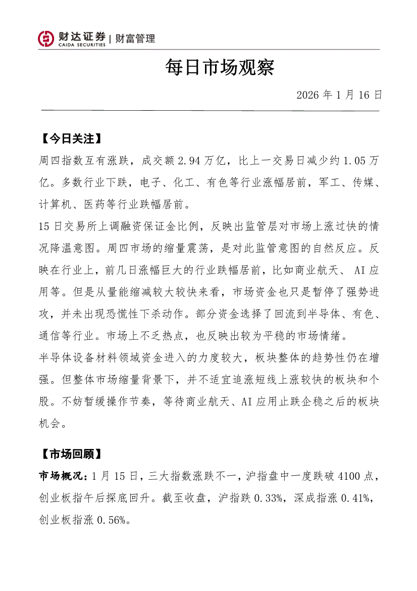 财达证券-每日市场观察-260116