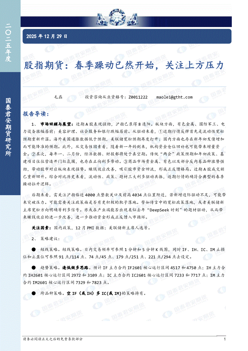 国泰君安期货-股指期货:春季躁动已然开始,关注上方压力-251229