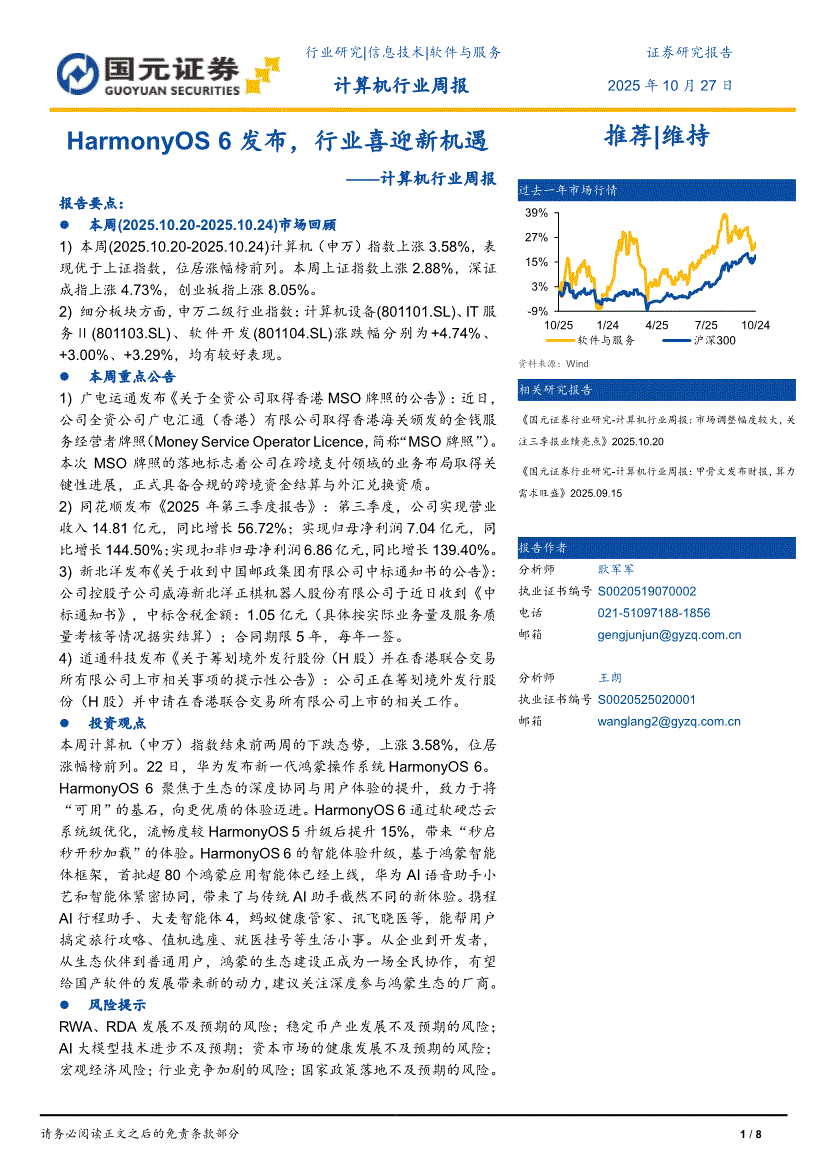 计算机行业:国元证券-计算机行业周报:HarmonyOS 6发布,行业喜迎新机遇-251027