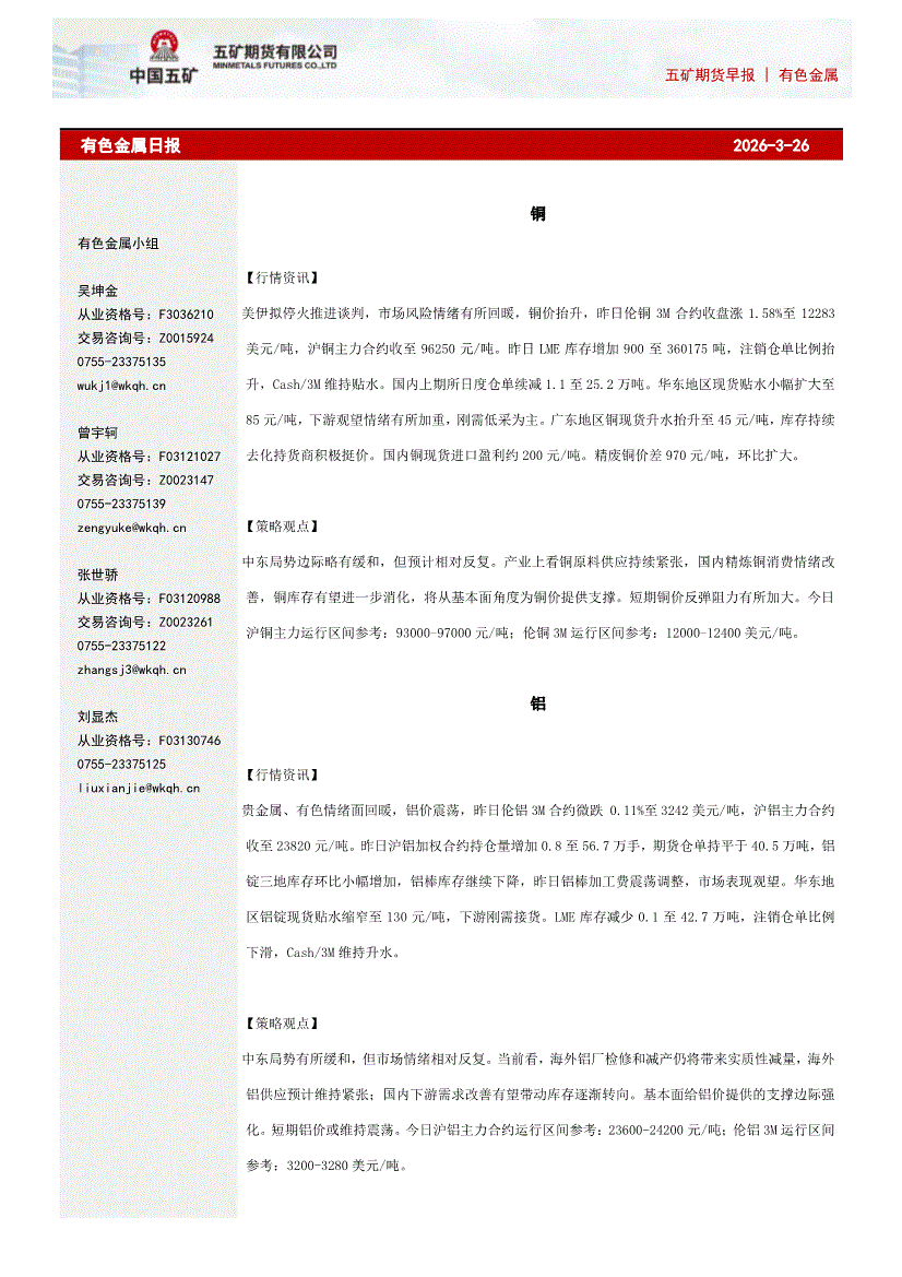 五矿期货-有色金属日报-260326