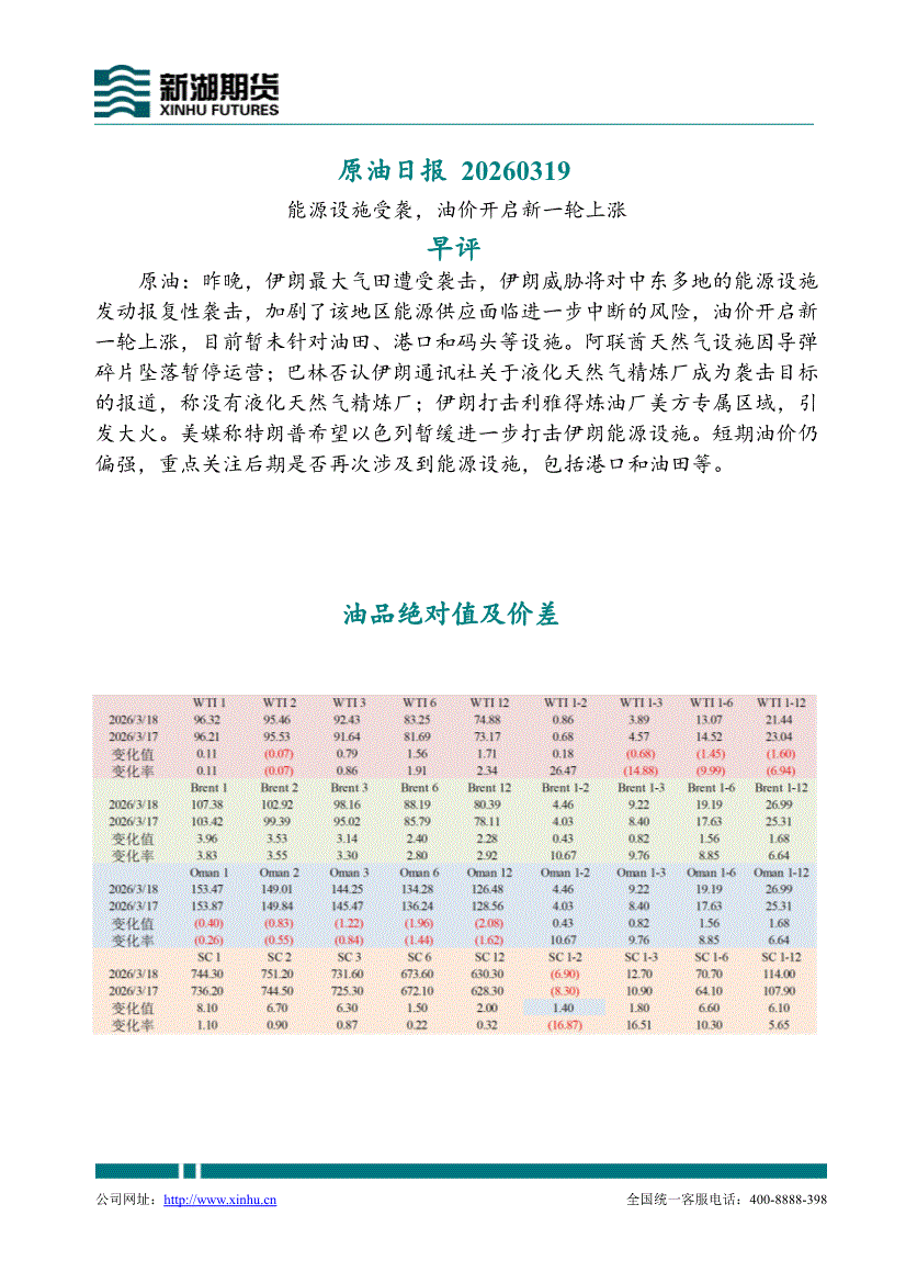 新湖期货-原油日报:能源设施受袭,油价开启新一轮上涨-260319
