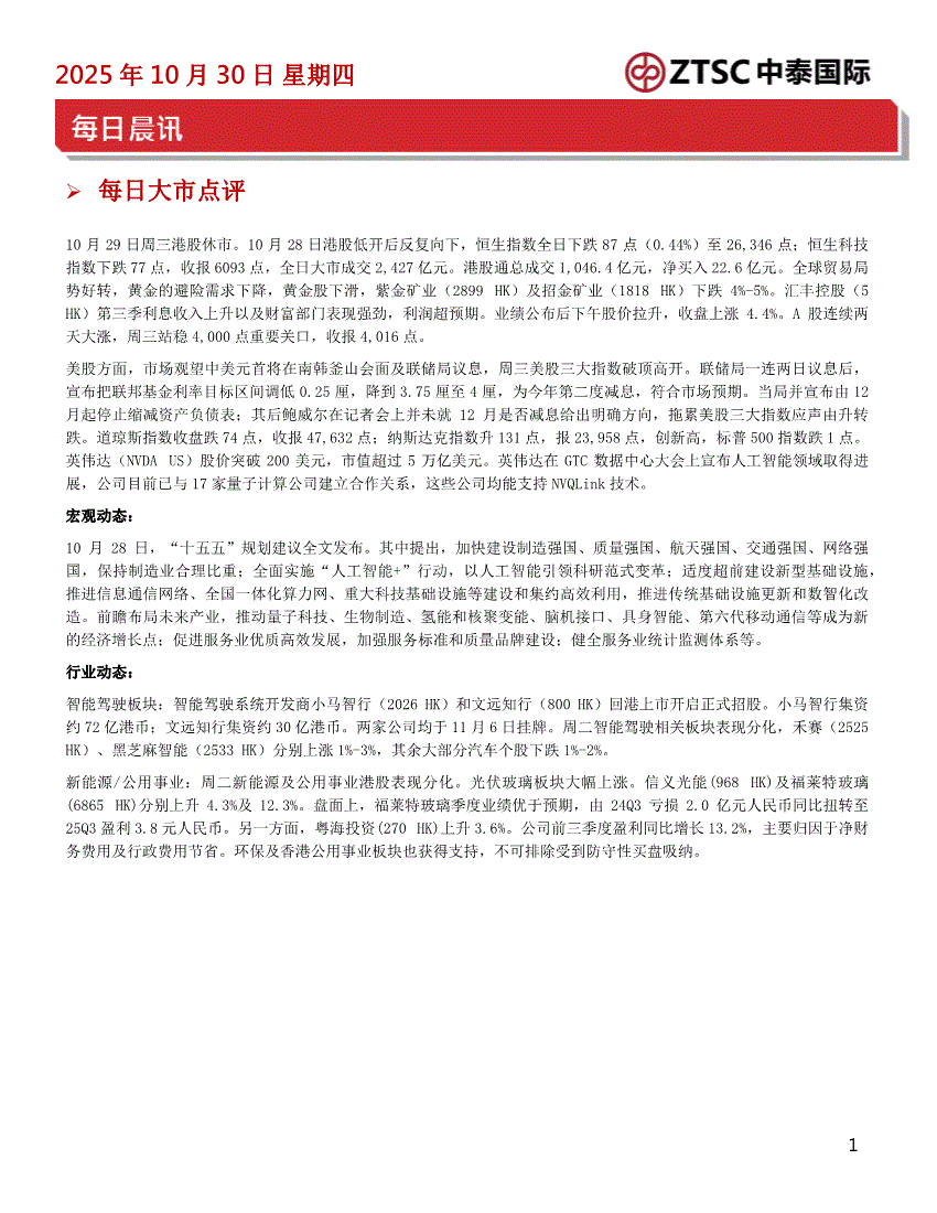 浦银国际-月度市场策略:短期关注风格切换,中期布局“十五五”结构性机遇-251031