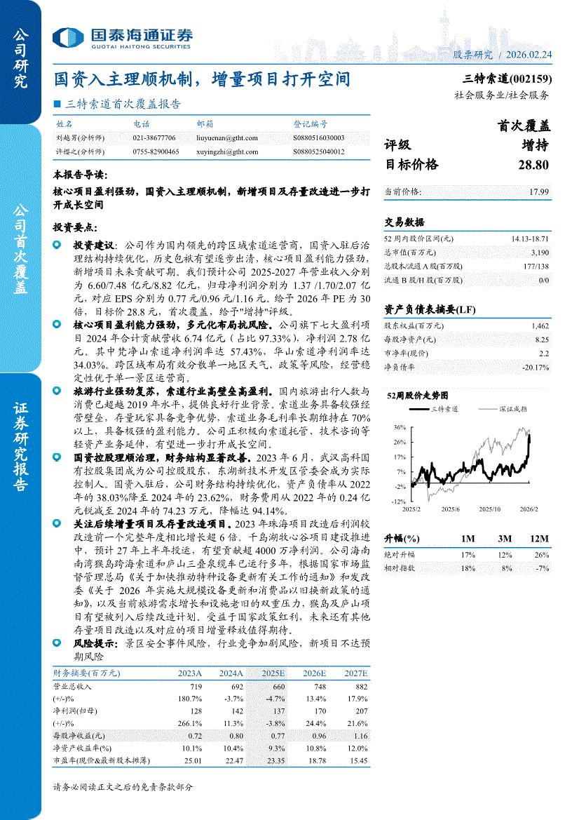 三特索道:国泰海通证券-三特索道-002159-首次覆盖报告:国资入主理顺机制,增量项目打开空间-260224