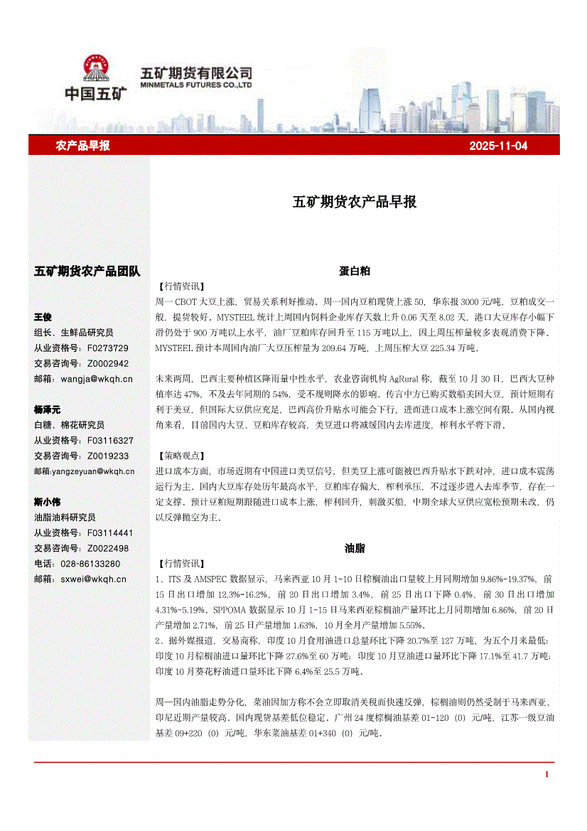 五矿期货-蛋白粕月报:成本支撑,油弱粕强-251107