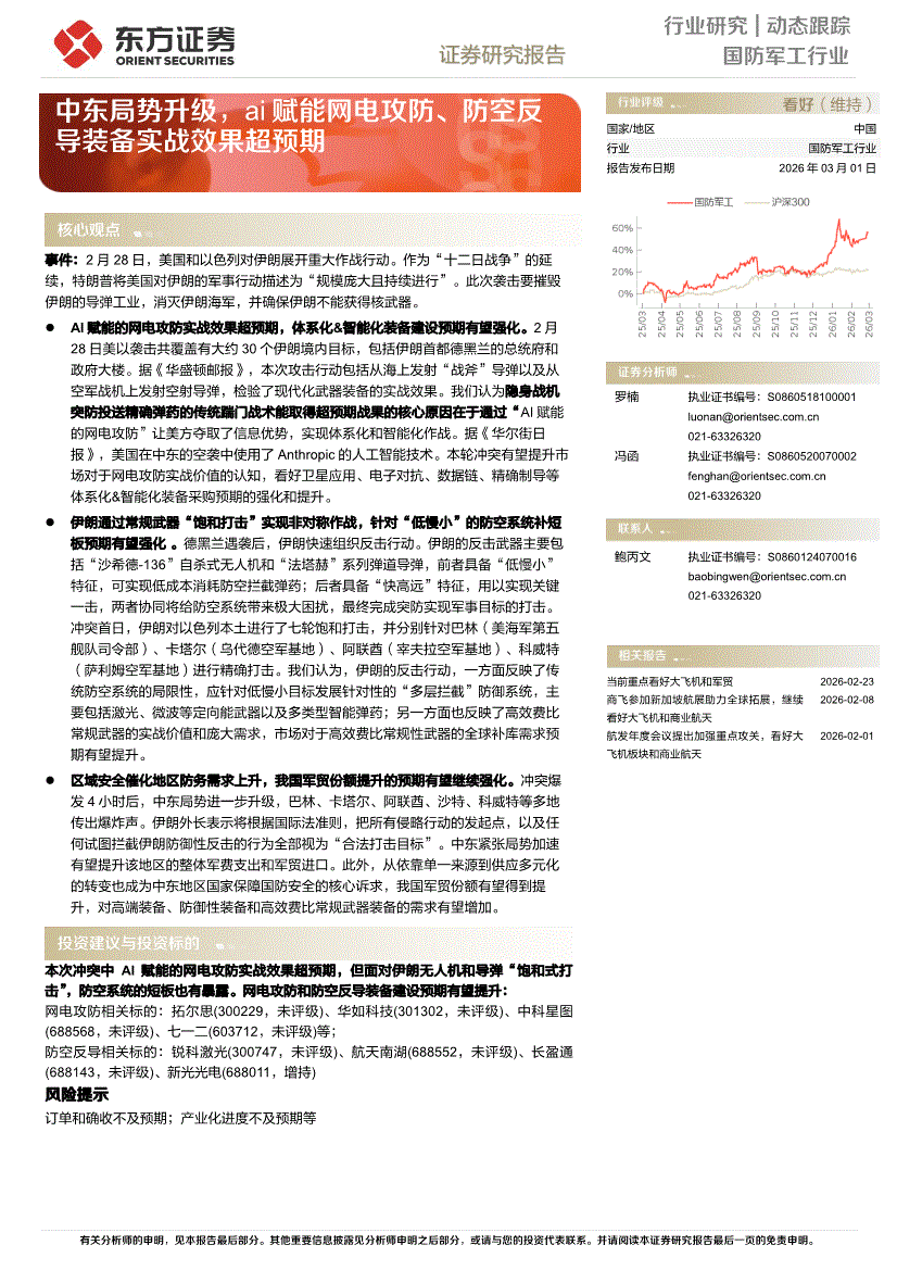 国防军工行业:东方证券-国防军工行业动态跟踪:中东局势升级,ai赋能网电攻防、防空反导装备实战效果超预期-260301