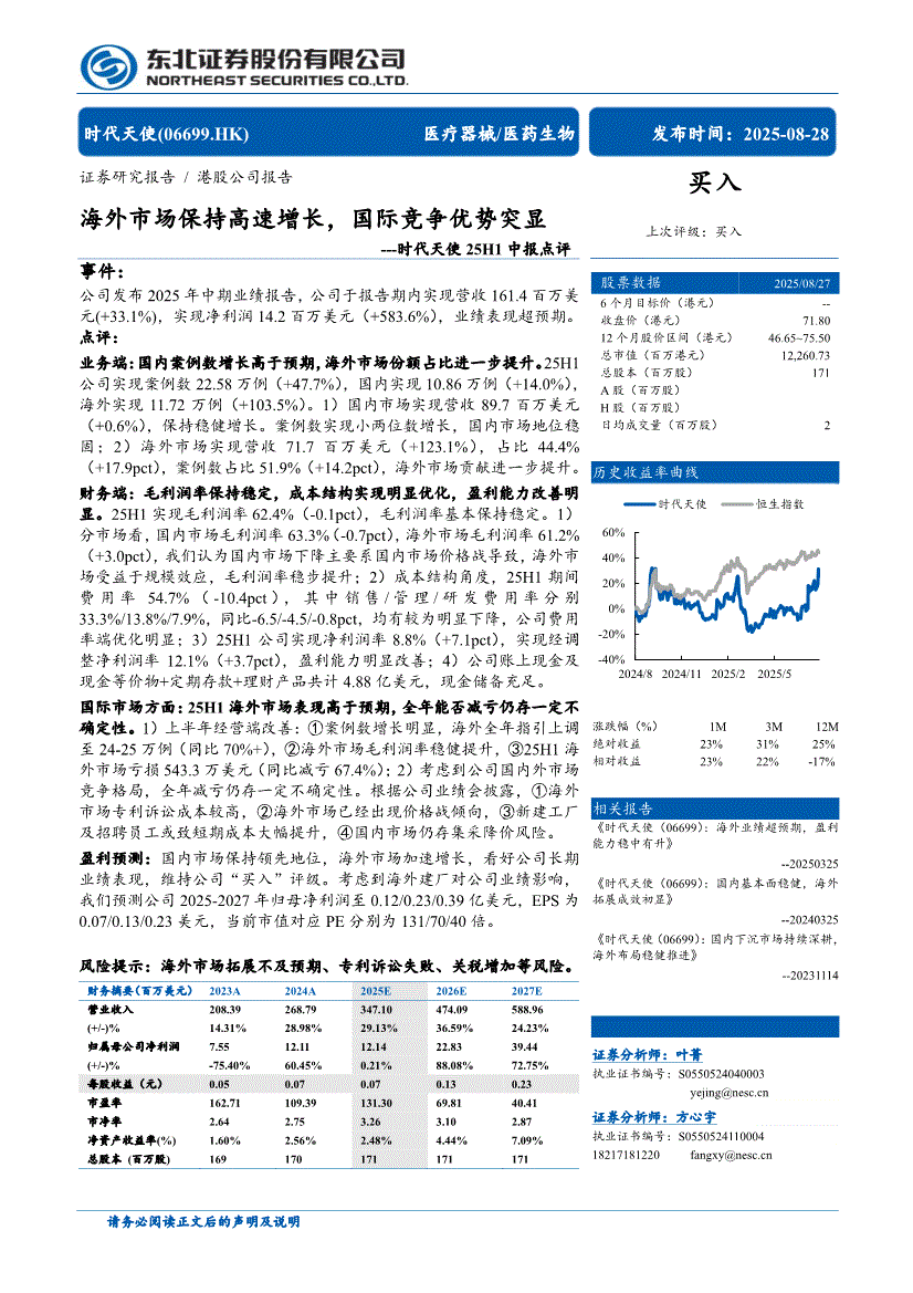 时代天使:东北证券-时代天使-6699.HK-25H1中报点评:海外市场保持高速增长,国际竞争优势突显-250828