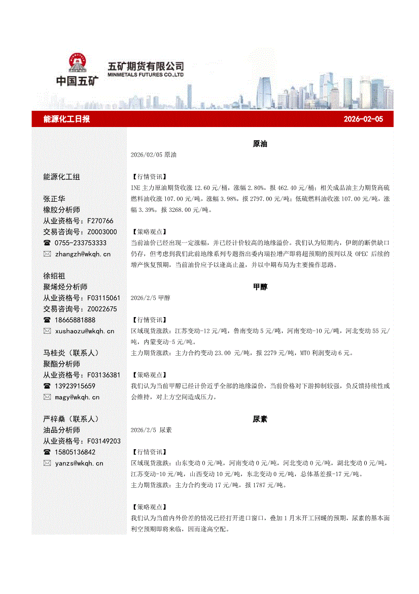 五矿期货-能源化工日报-260205