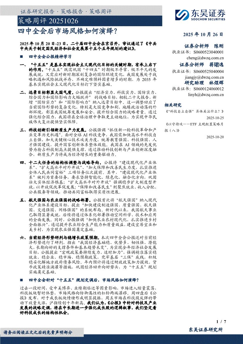东吴证券-策略周评:四中全会后市场风格如何演绎?-251026
