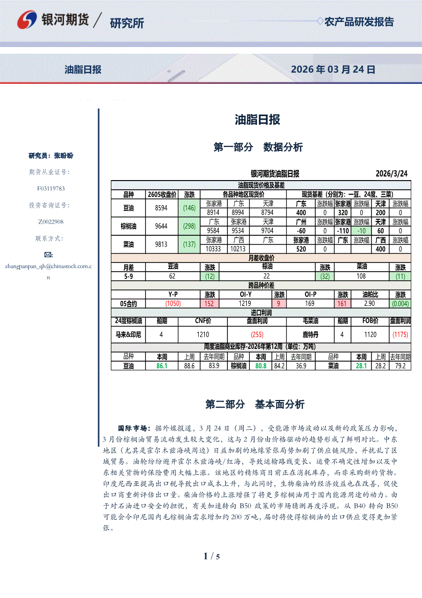 银河期货-油脂日报-260324