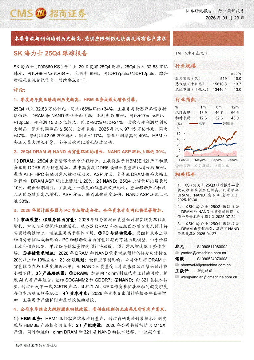SK海力士:招商证券-SK海力士-000660.KS-25Q4跟踪报告:本季营收与利润均创历史新高,受供应限制仍无法满足所有客户需求-260129