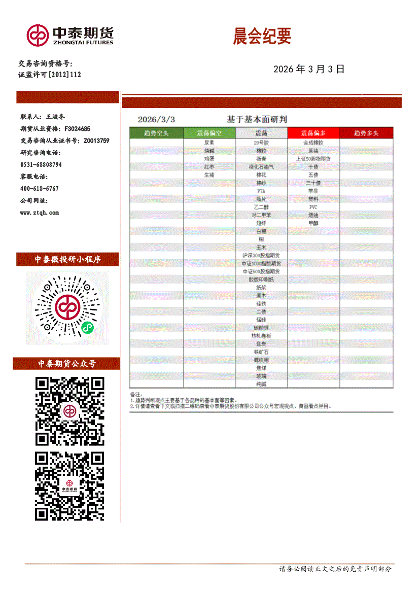 中泰期货-晨会纪要-260304