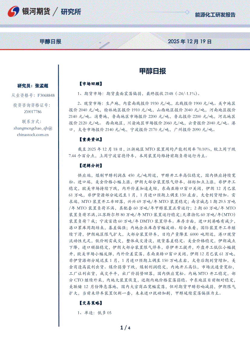 银河期货-甲醇日报-251219