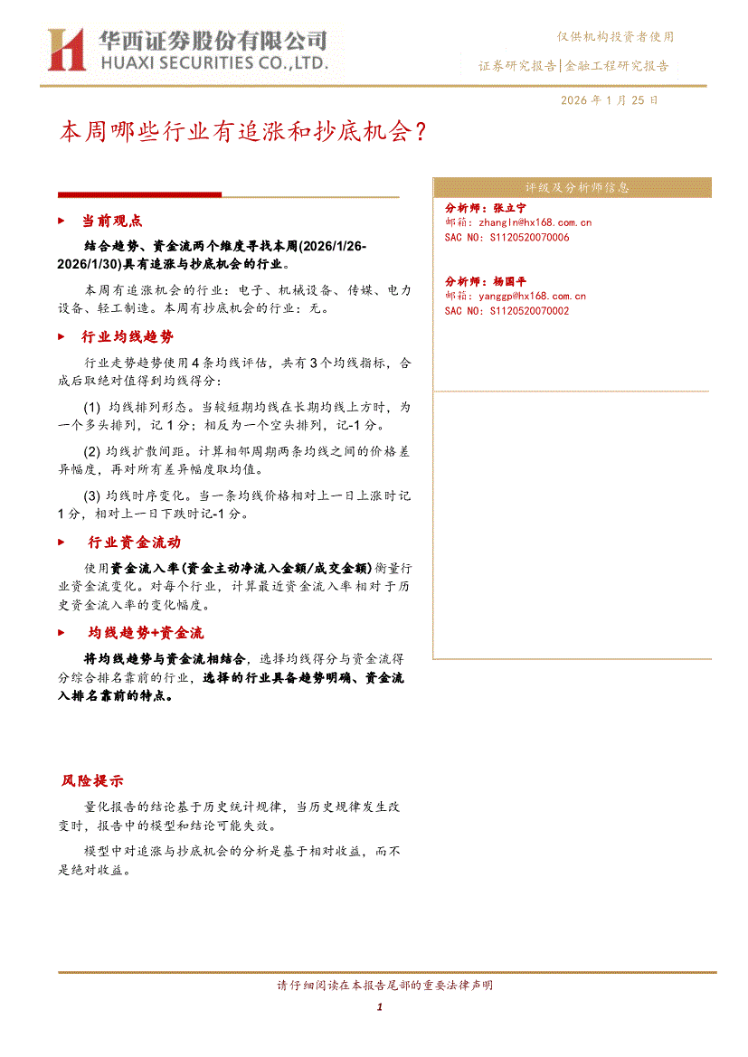 华西证券-本周哪些行业有追涨和抄底机会?-260125