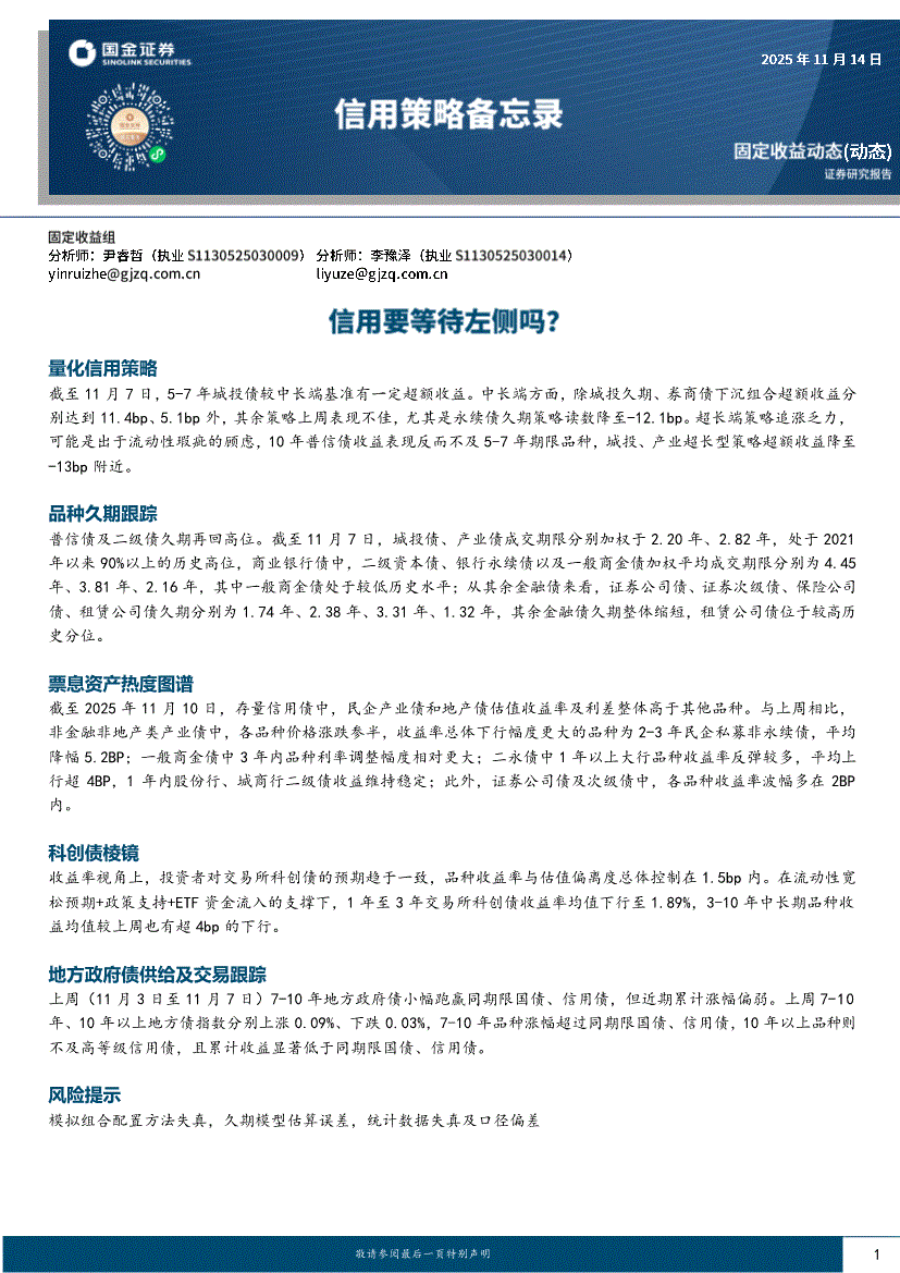 国金证券-信用策略备忘录:信用要等待左侧吗?-251114