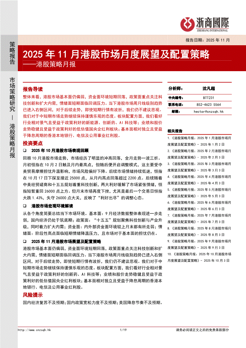 浙商国际-港股策略月报:2025年11月港股市场月度展望及配置策略-251103