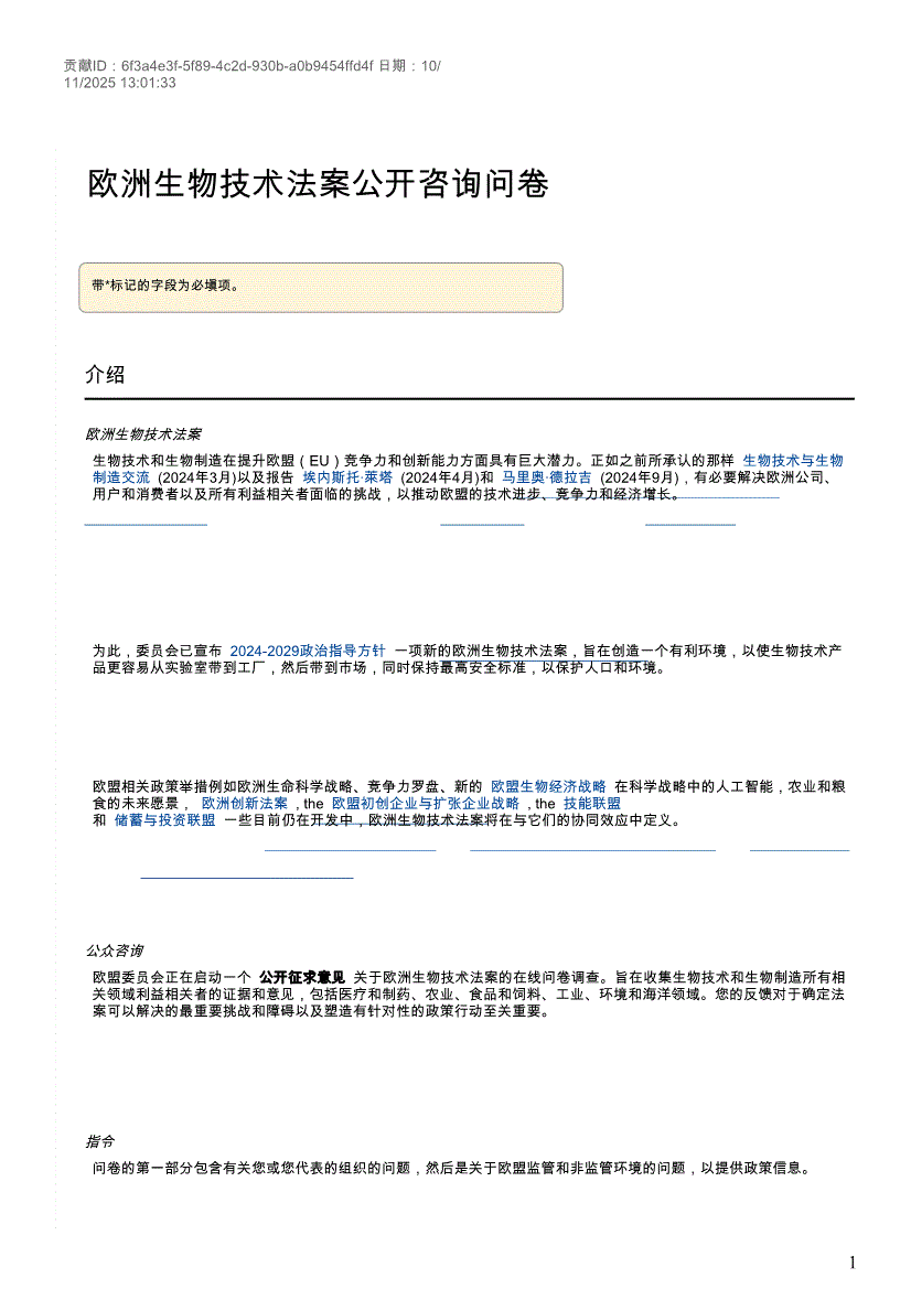 EFPIA-欧洲生物技术法案公开咨询问卷-251114