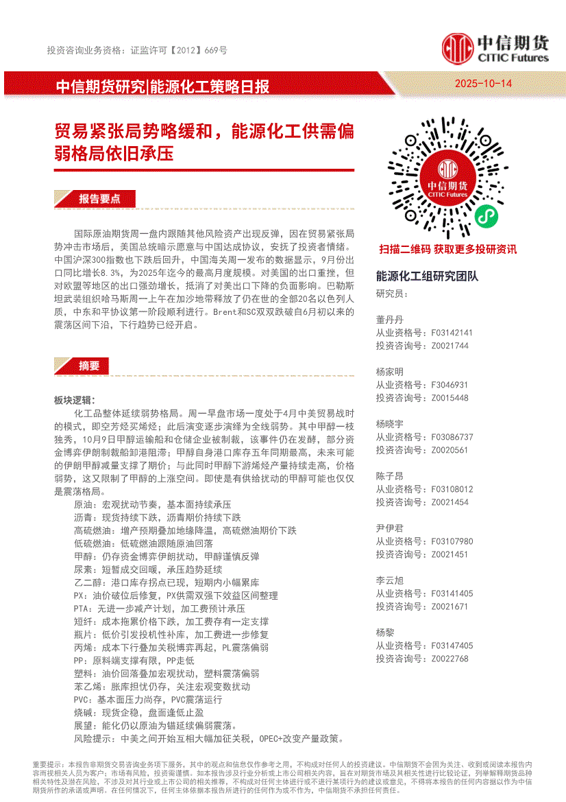 中信期货-能源化工策略日报:贸易紧张局势略缓和,能源化工供需偏弱格局依旧承压-251014