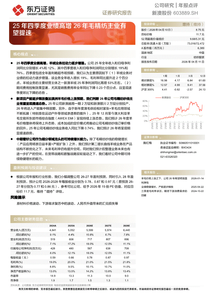 新澳股份:东方证券-新澳股份-603889-25年四季度业绩高增,26年毛精纺主业有望提速-260411