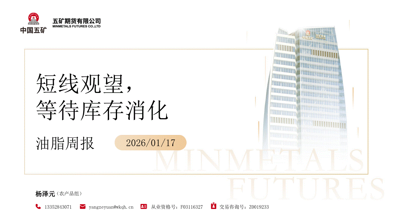 五矿期货-油脂周报:短线观望,等待库存消化-260117