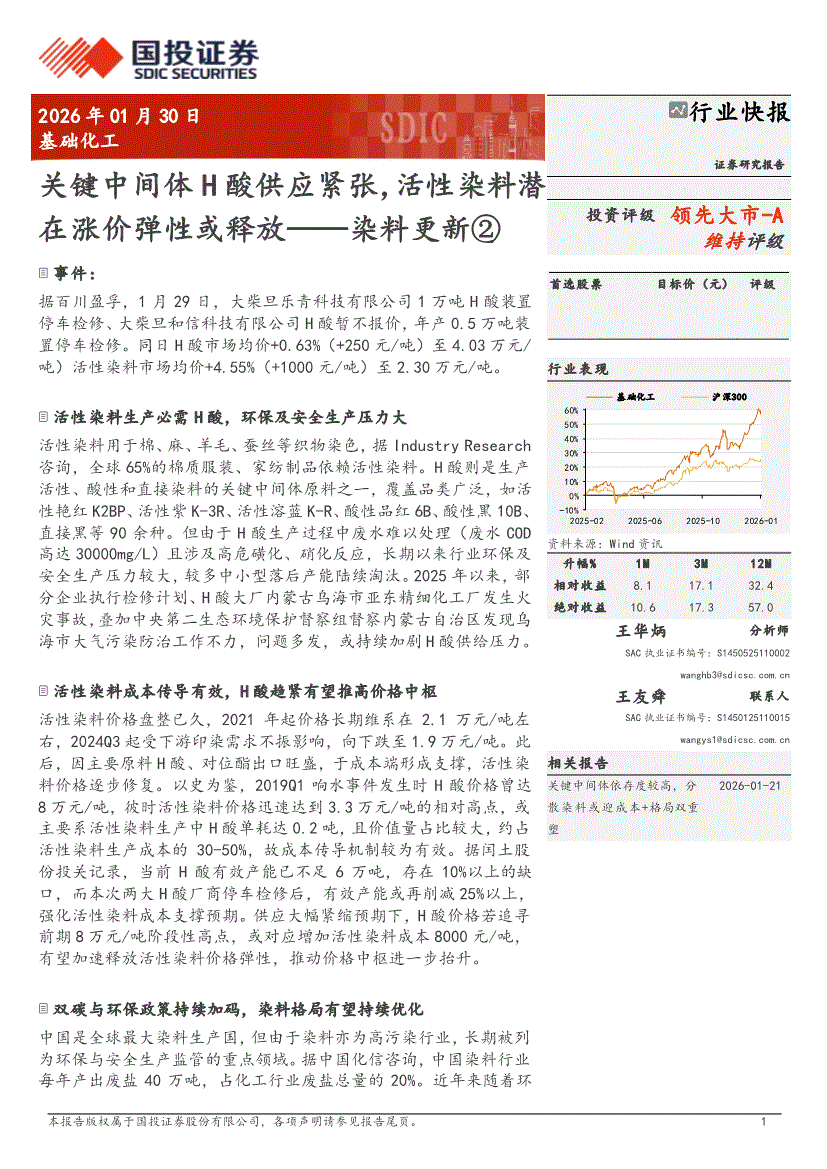 基础化工行业:国投证券-基础化工行业染料更新②:关键中间体H酸供应紧张,活性染料潜在涨价弹性或释放-260130