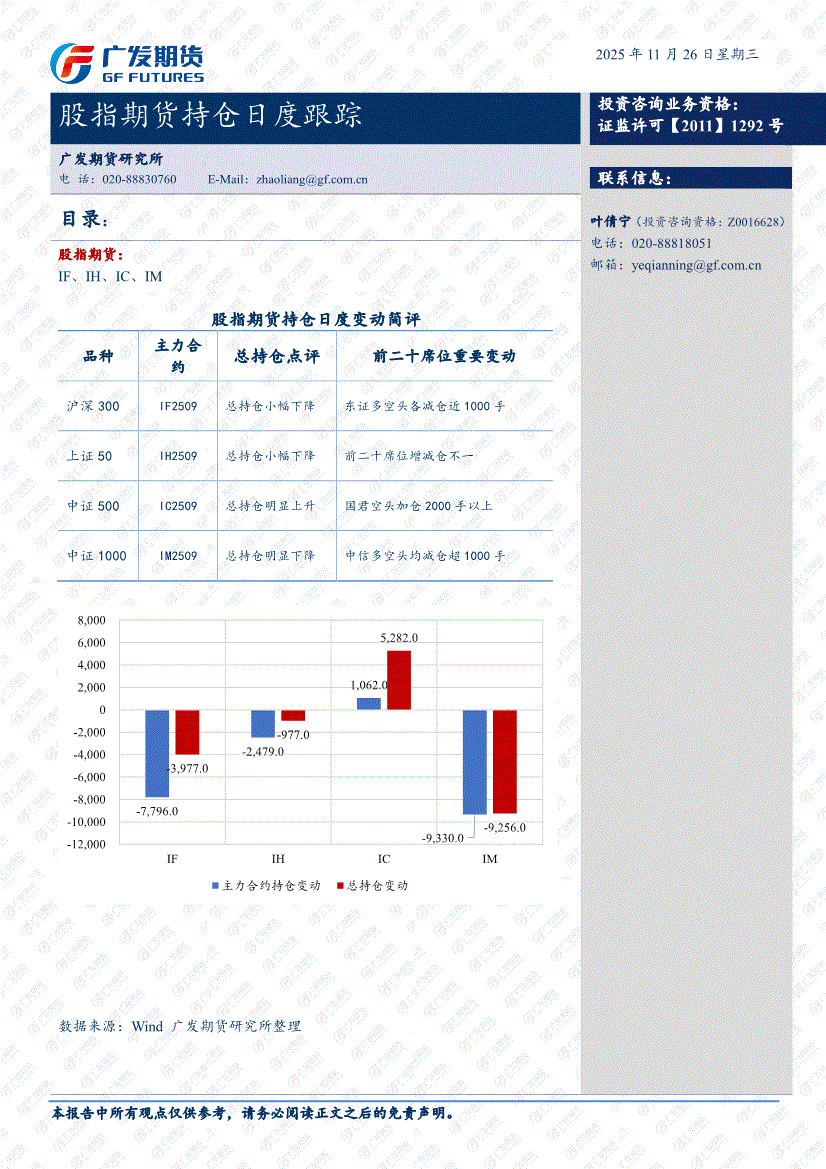广发期货-股指期货持仓日度跟踪-251126
