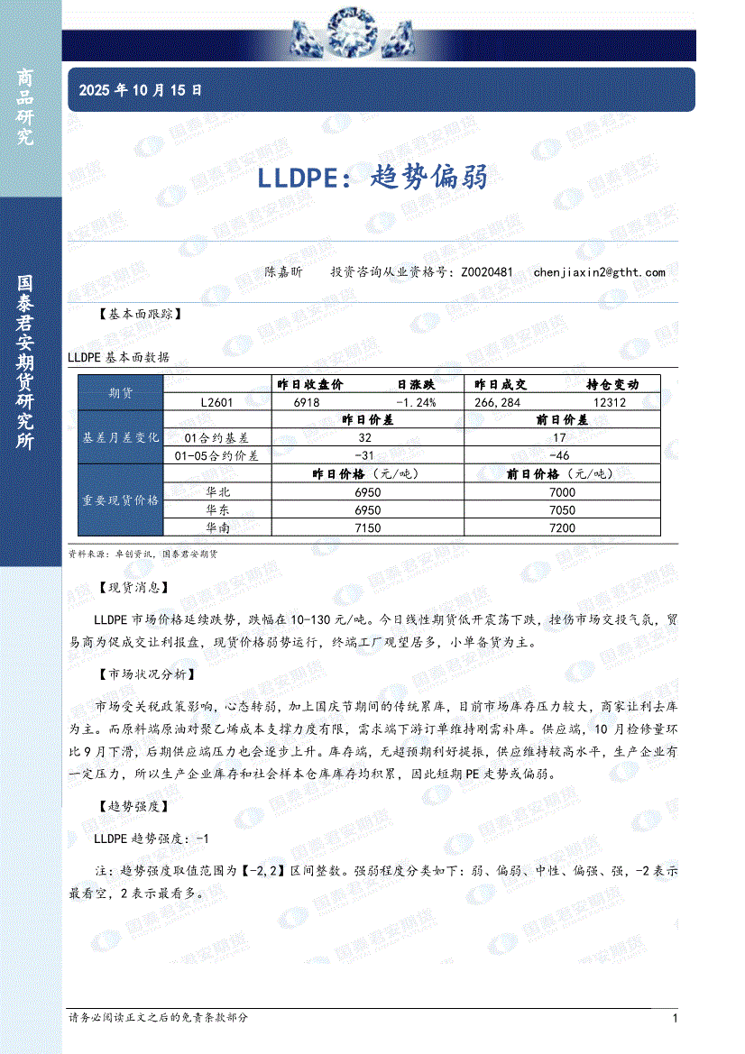 国泰君安期货-LLDPE:趋势偏弱-251015