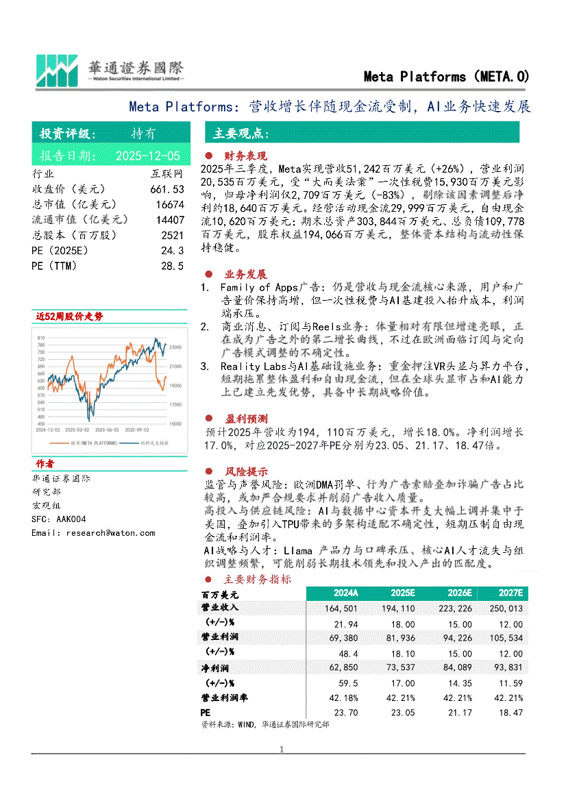 Meta Platforms:华通证券国际-Meta Platforms-META.US-营收增长伴随现金流受制,AI业务快速发展-251205