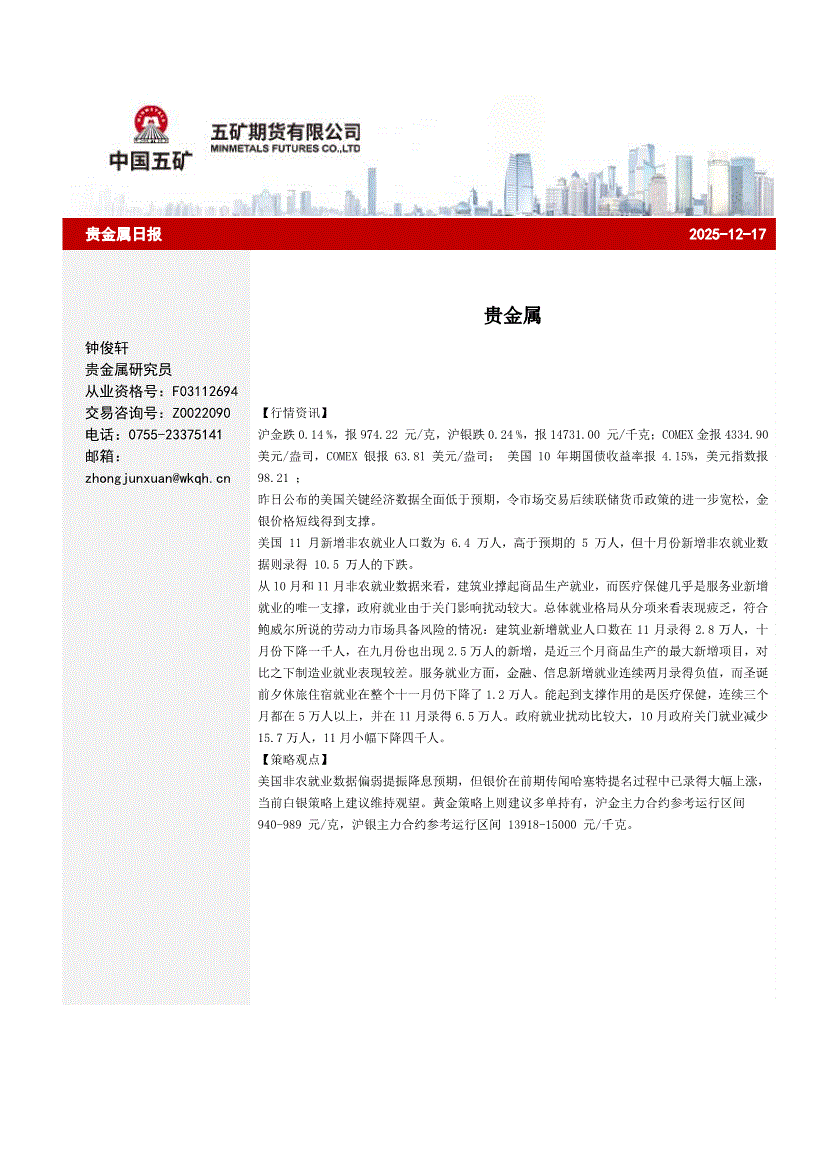 五矿期货-贵金属周报:注意价格剧烈波动风险-251213