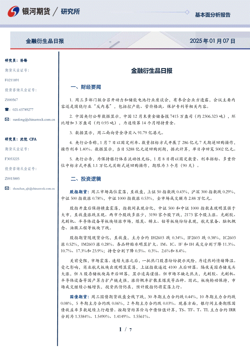 银河期货-金融衍生品日报-260107