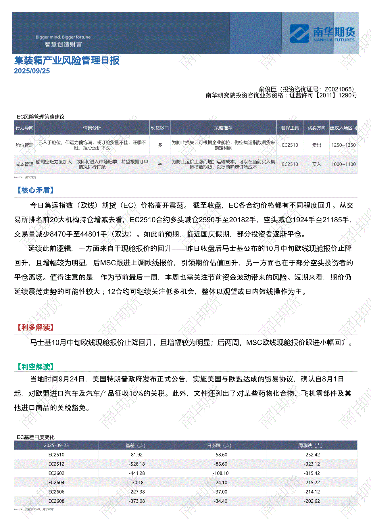南华期货-集运产业周报:运价降幅趋缓,关注12合约低多机会-250916