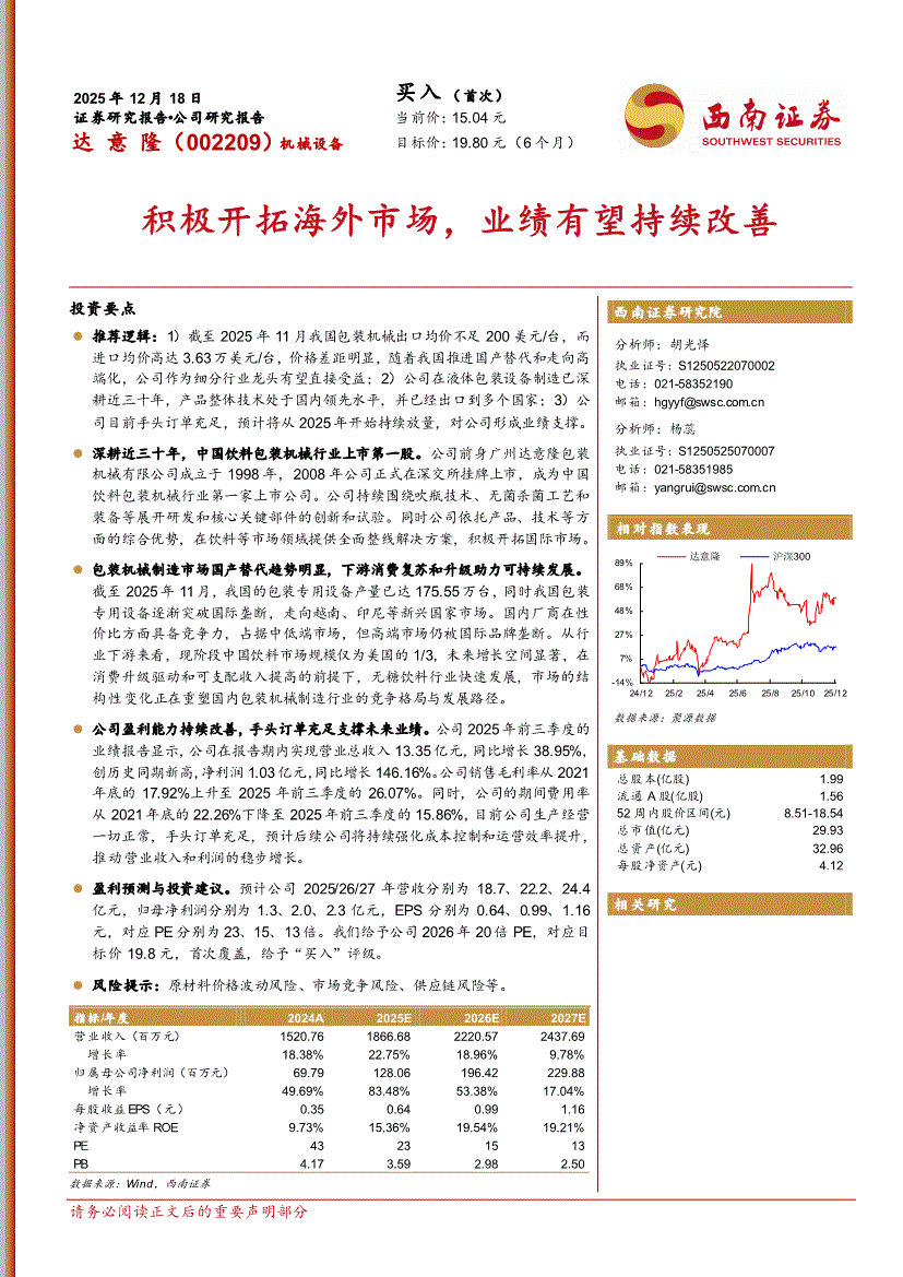 达意隆:西南证券-达意隆-002209-积极开拓海外市场,业绩有望持续改善-251218