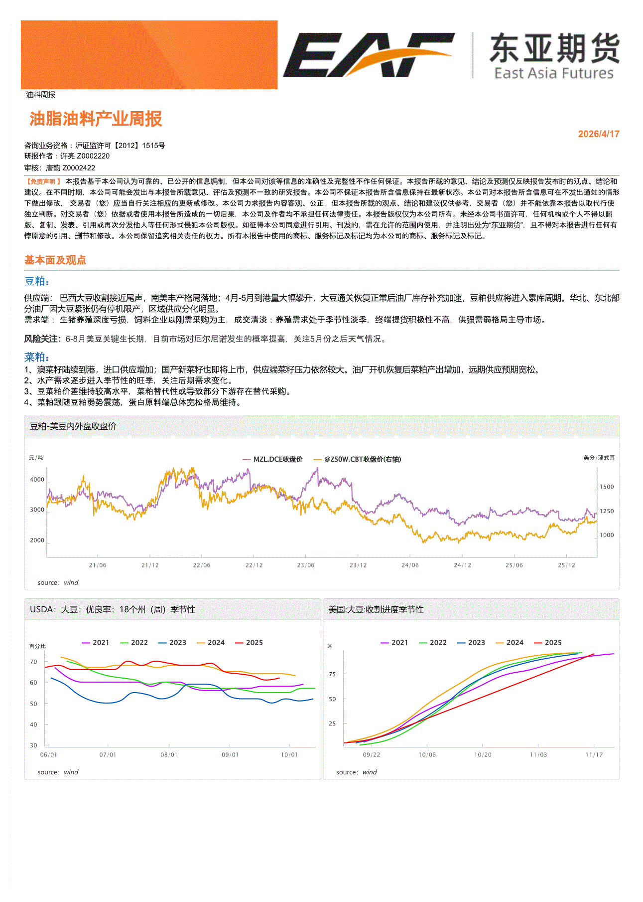 上海东亚期货-油脂油料产业周报-260417