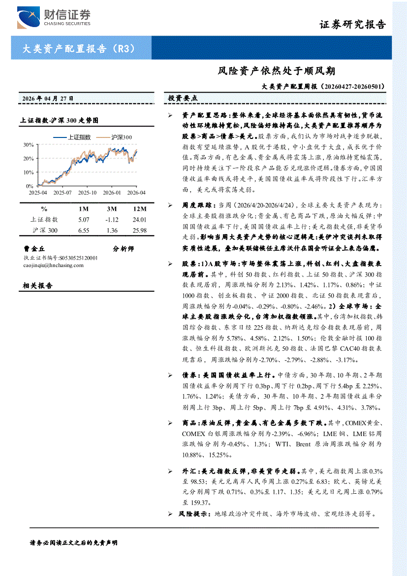 财信证券-大类资产配置周报:风险资产依然处于顺风期-260427