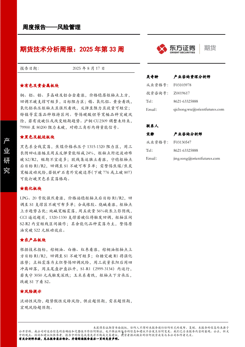 东证期货-周度报告——风险管理:期货技术分析周报,2025年第33周-250817