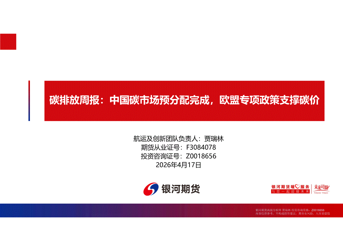 银河期货-碳排放周报:中国碳市场预分配完成,欧盟专项政策支撑碳价-260417