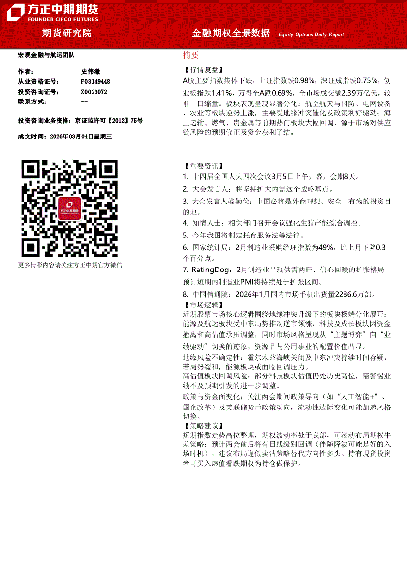 方正中期期货-金融期权全景数据-260304