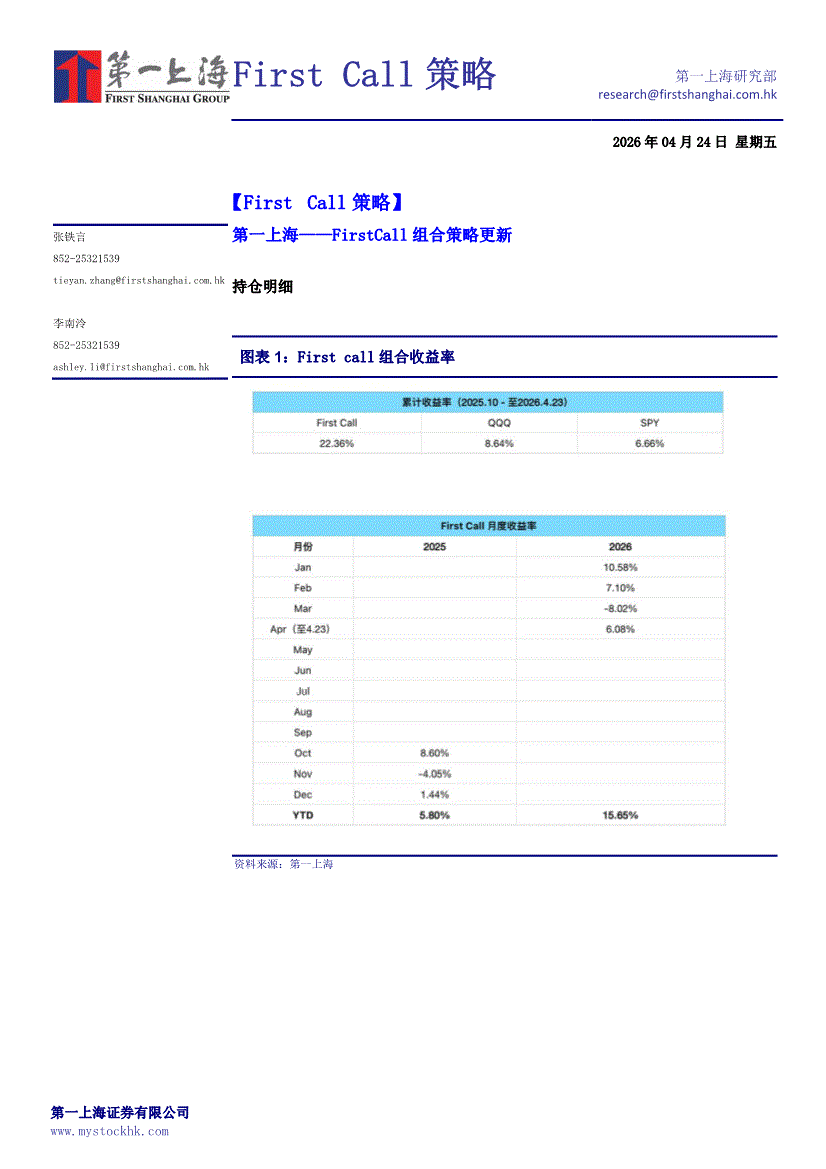第一上海-First Call策略-260424