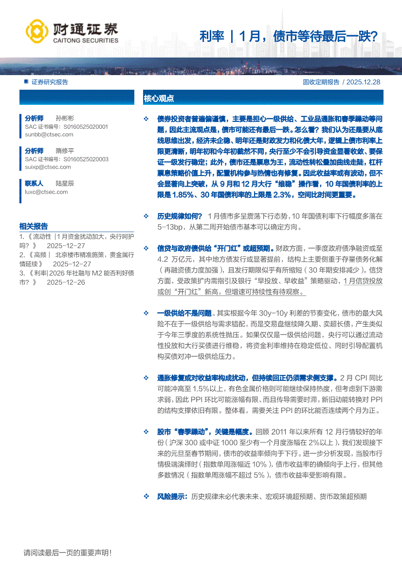 财通证券-利率|1月,债市等待最后一跌?-251228