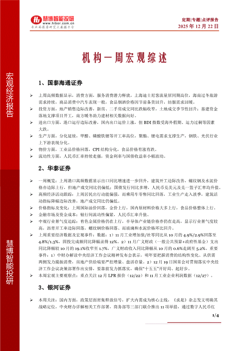 慧博智能投研-机构一周宏观综述-251222