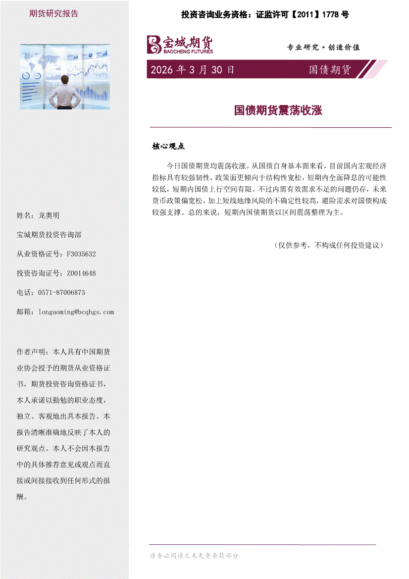 宝城期货-国债期货日报:国债期货震荡收涨-260330