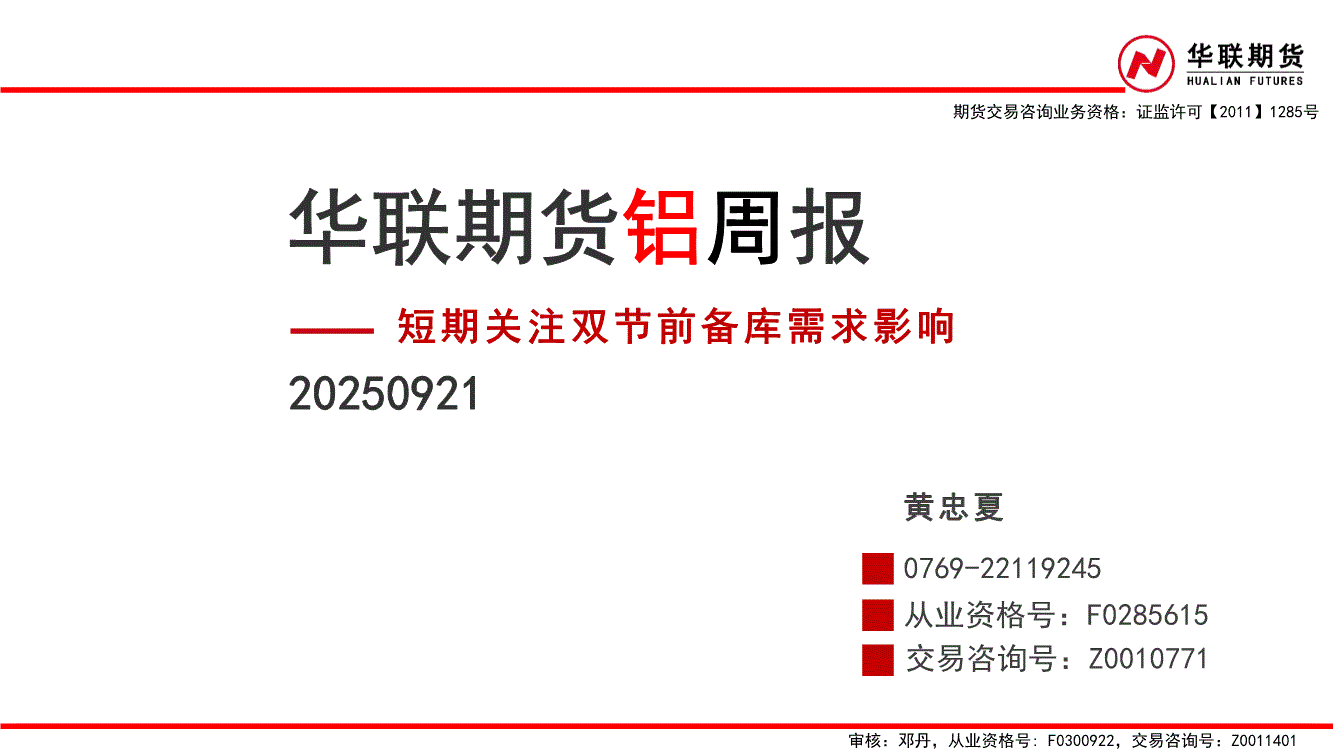 华联期货-铝周报:短期关注双节前备库需求影响-250921