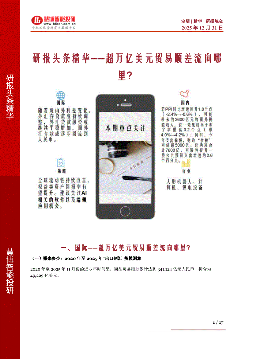慧博智能投研-慧博研报炼金之研报头条精华:超万亿美元贸易顺差流向哪里?-251231