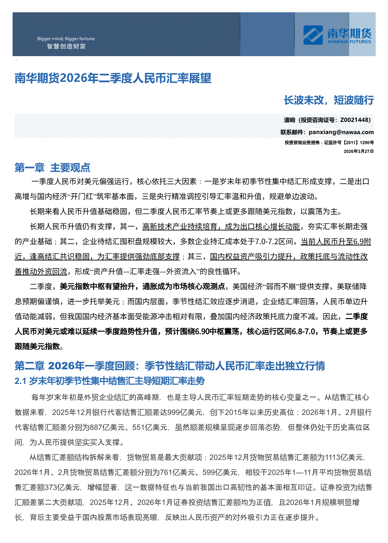 南华期货-2026年二季度人民币汇率展望:长波未改,短波随行-260327