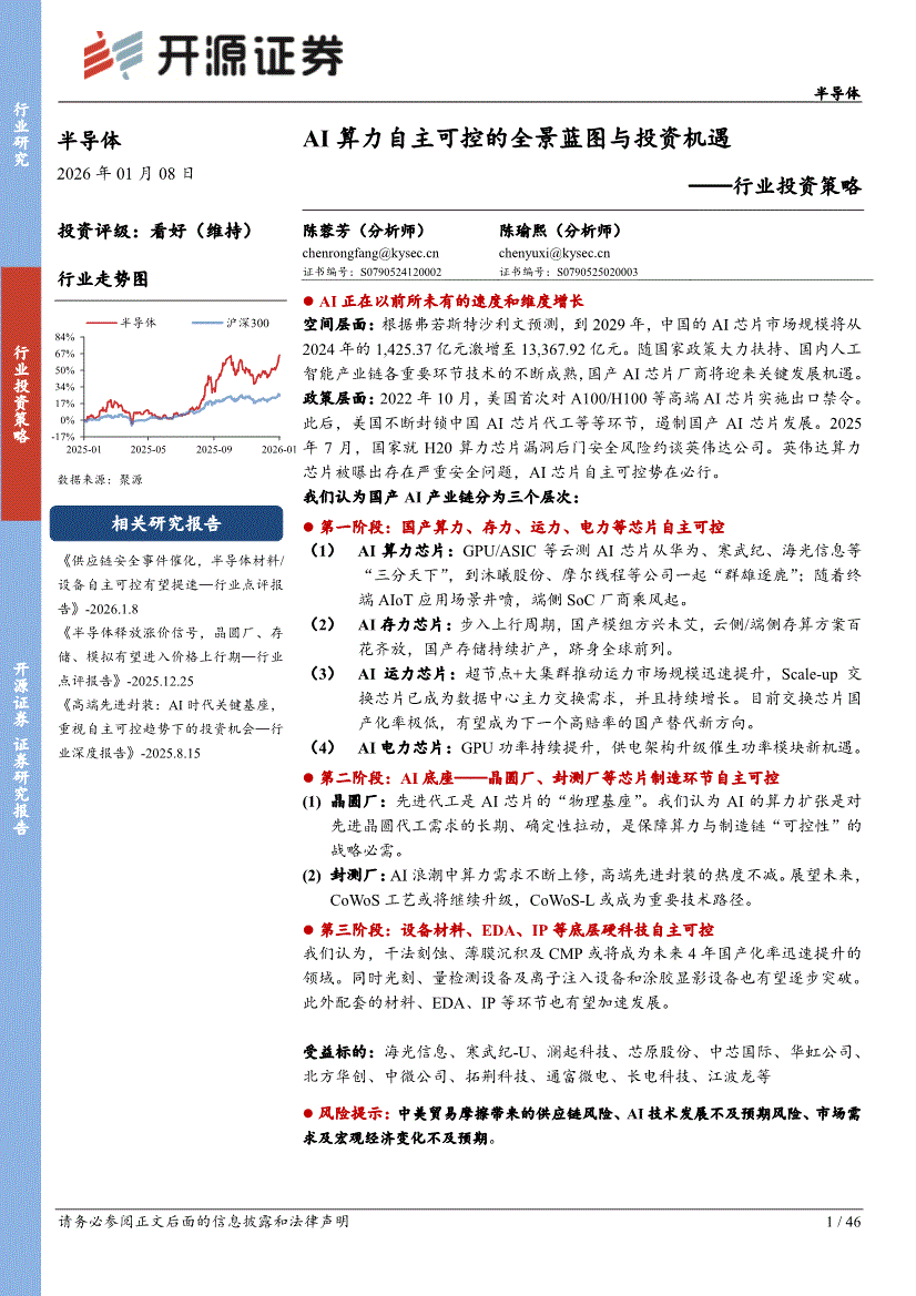 半导体行业:开源证券-半导体行业投资策略:AI算力自主可控的全景蓝图与投资机遇-260108