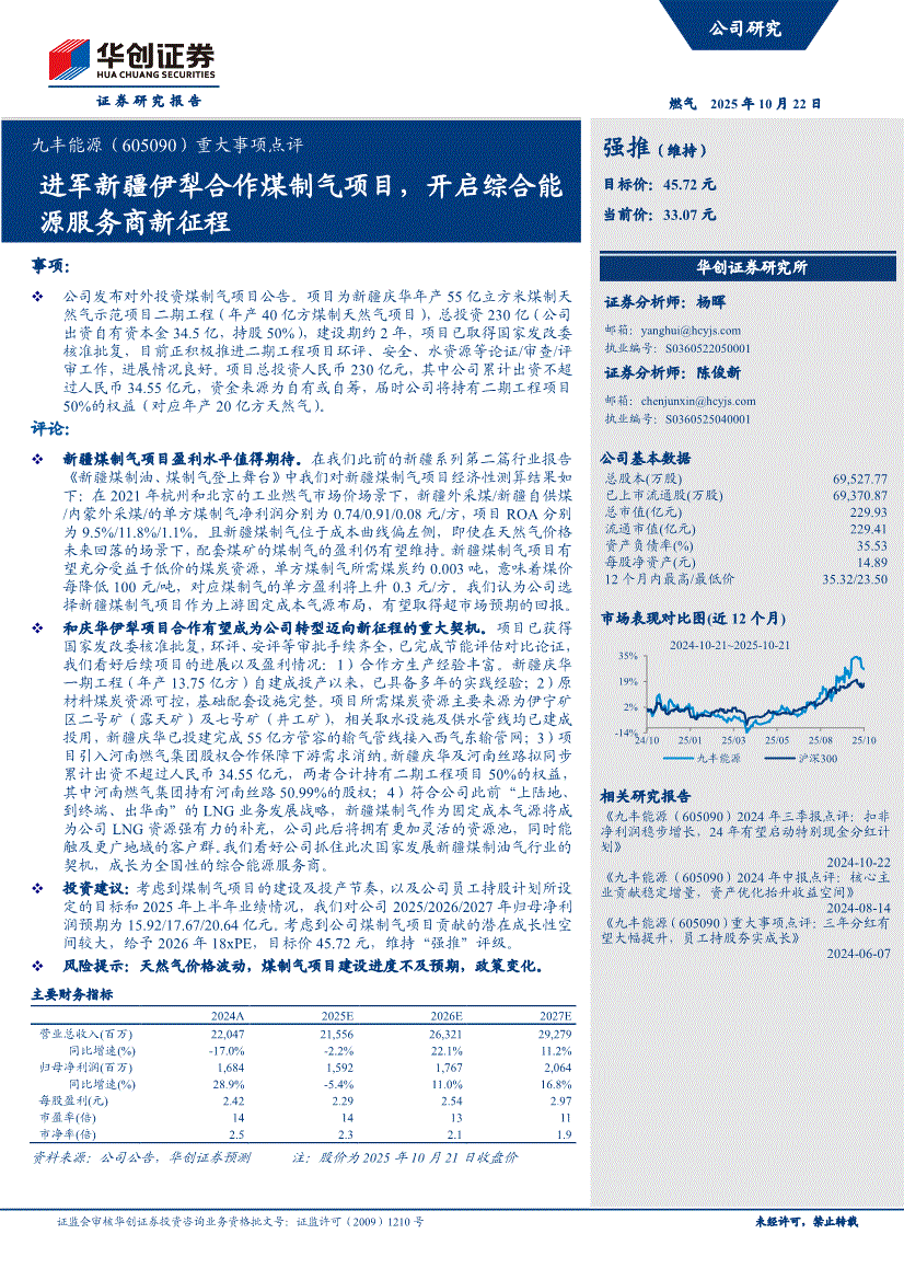 九丰能源:华创证券-九丰能源-605090-重大事项点评:进军新疆伊犁合作煤制气项目,开启综合能源服务商新征程-251022