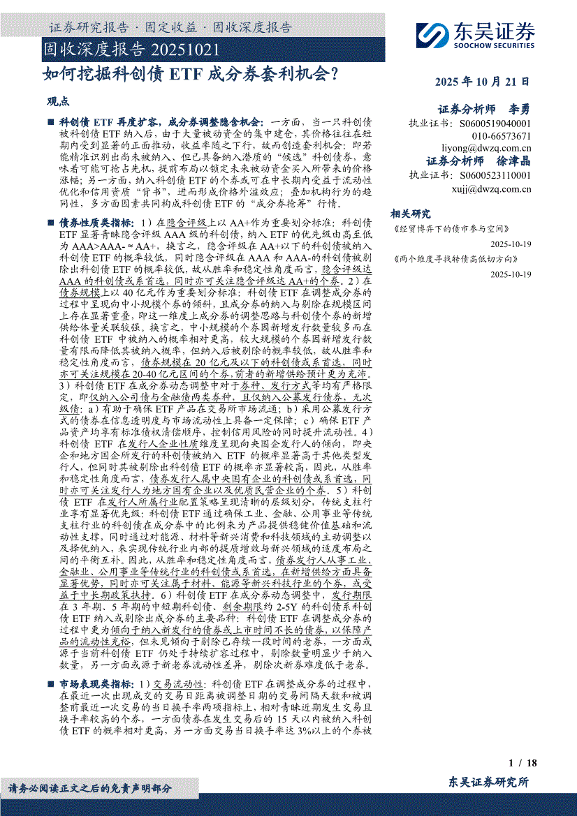 东吴证券-固收深度报告:如何挖掘科创债ETF成分券套利机会?-251021