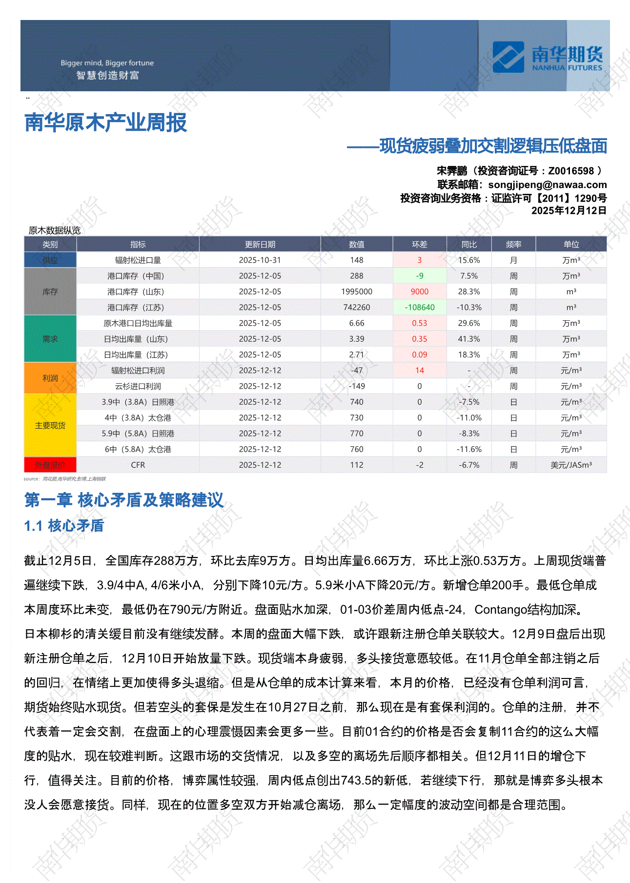 南华期货-原木产业周报:现货疲弱叠加交割逻辑压低盘面-251212