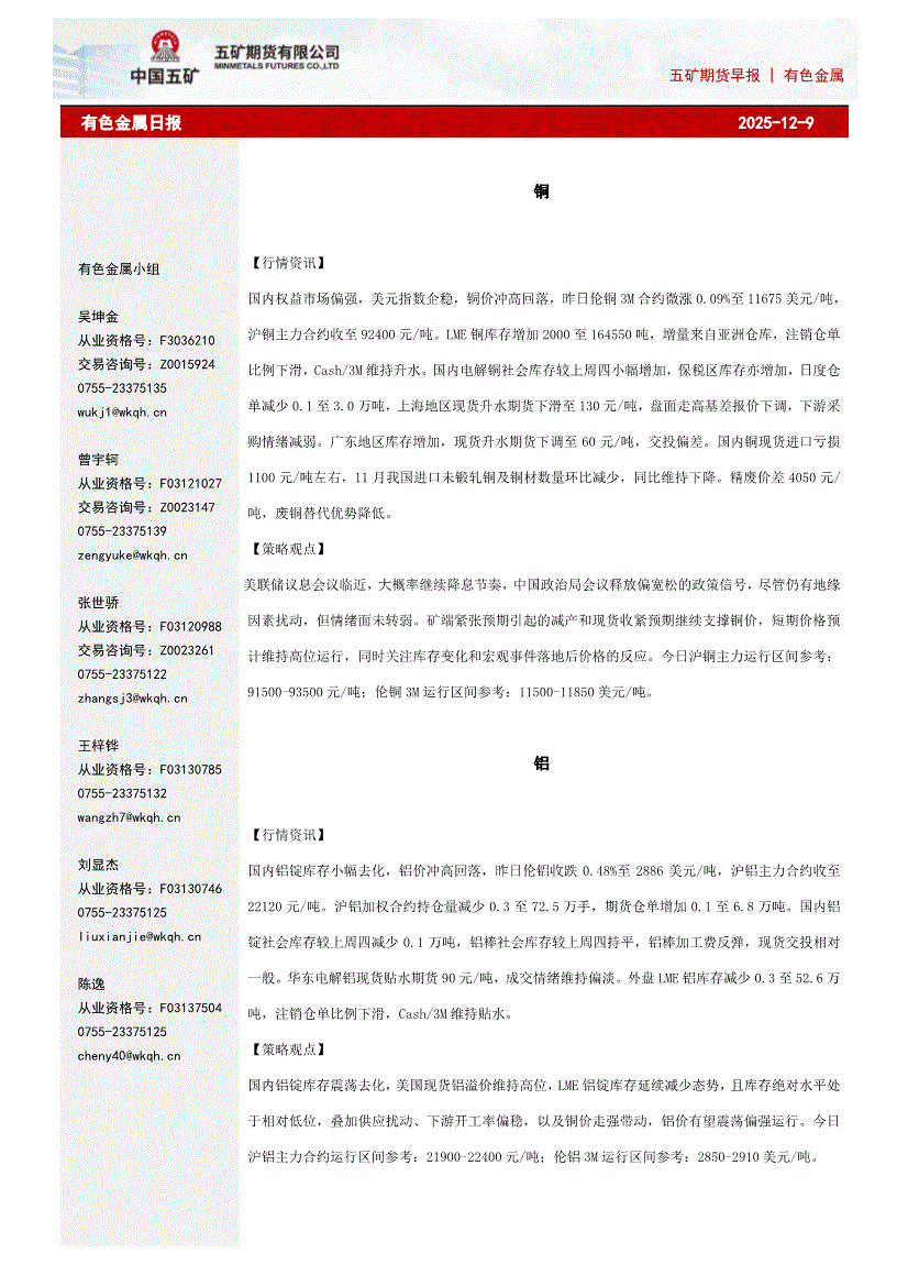 五矿期货-铝周报:宏观事件落地,铝价调整-251213